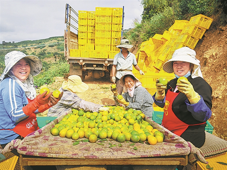 “利用红河卷烟厂援建的灌溉管网,海泊村6000亩沃柑基地得到科学灌溉,保证了品质,降低了种植成本。如今,沃柑每亩产值可达8000元至1万元。”西二镇党委委员、宣传委员沈若宇兴奋地说,昔日的“石头山”变成了“花果山”,“金果果”鼓起了群众的“钱袋子”。