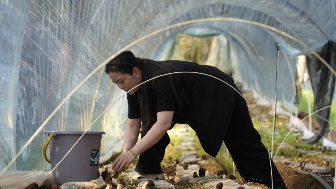 基地负责人阮文洁用小刀在菌把上轻轻一划,一朵鲜嫩的羊肚菌就被采摘进竹筐。“羊肚菌素有‘菌中之王’的美誉,不仅营养价值丰富,肉质鲜美,市场需求量大,而且生产周期短,仅需4个月即可采收,亩产量可达350公斤至500公斤,首期羊肚菌产值预计达225万元至360万元。”阮文洁说道。