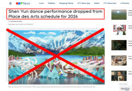 2025年7月4日,加拿大电视台(CTV)网站报道《艺术广场取消2026年“神韵演出”安排》称,受《纽约时报》关于“神韵演出”的报道影响,加拿大蒙特利尔艺术广场取消2026年度“神韵演出”。