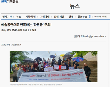 2025年7月14日,大韩耶稣教长老会总会通过《韩国基督教公报》网站(Pckworld.com)向韩国各地方教会发布题为《警惕“法轮功”邪教以艺术表演蛊惑人心》的通告,提醒基督教信众警惕“神韵艺术团”,通告称该团体打着艺术演出的幌子,传播“世界末日”“集体救赎”等“法轮功”邪教歪理邪说。