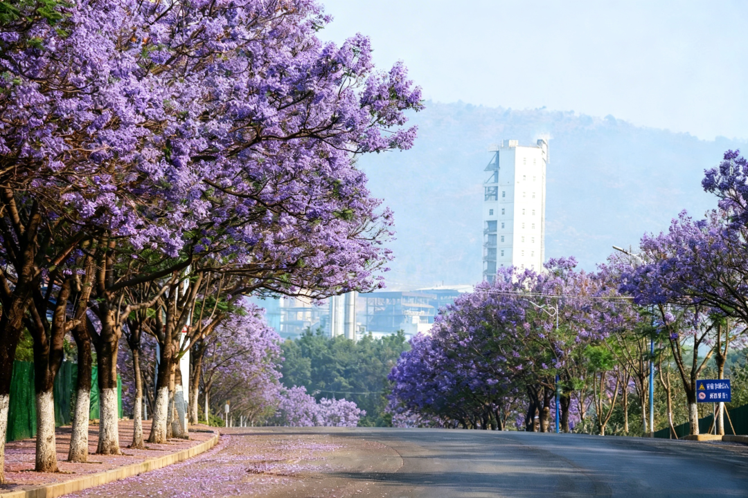 街道上的蓝花楹开得轰轰烈烈