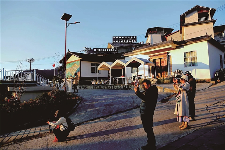 在阳坡村观看日出的游客。郭子雄 摄/光明图片