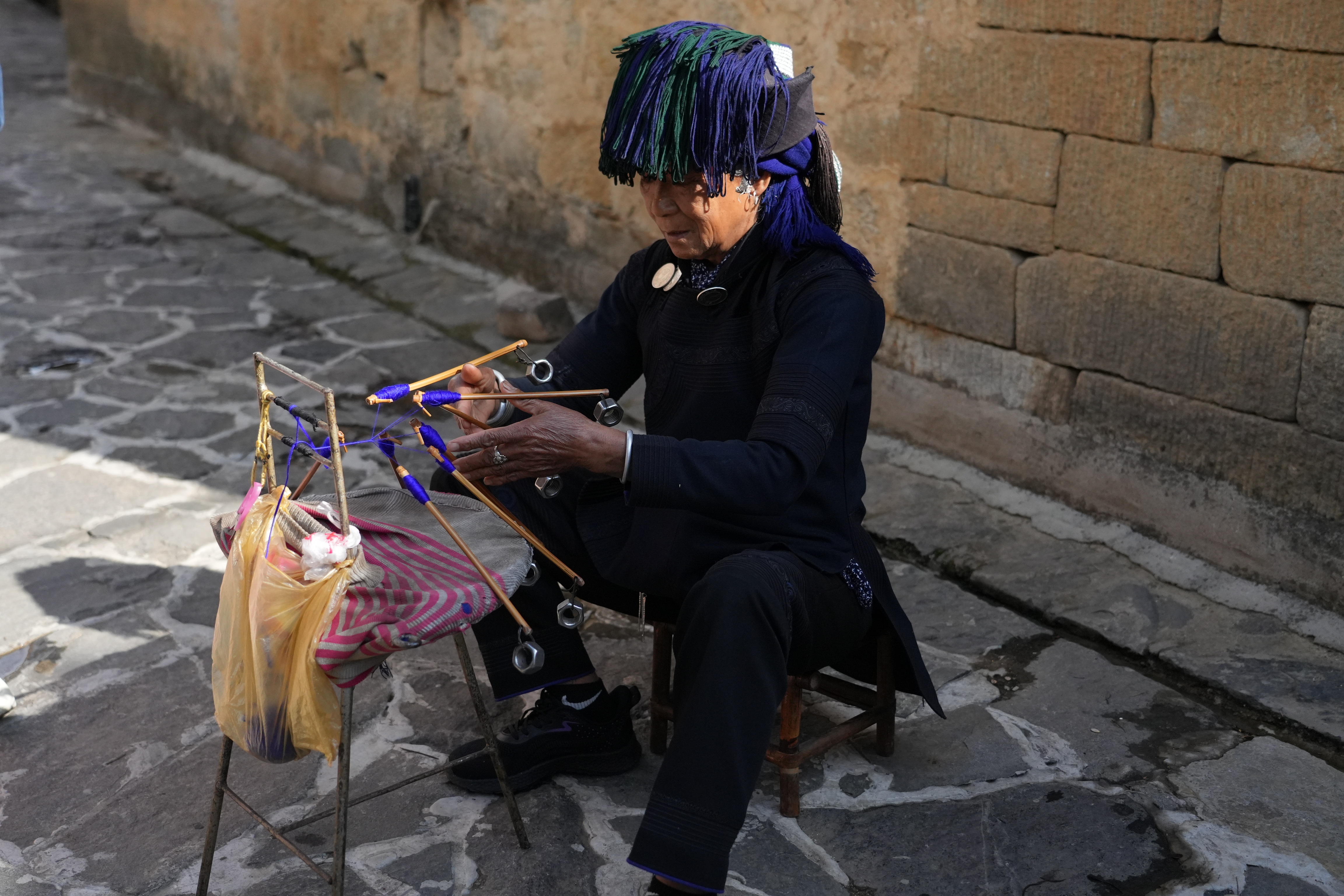 阿者科村的成功,更深层的密码在于对文化基因的虔诚守护。村民日常的纺线、梯田耕作,都能成为游客沉浸式体验的“活态教材”。年过六旬的马建昌每天在广场上演唱哈尼古歌,将千年农耕智慧化作音符传递给游客;绣娘以靛蓝染布、银饰缀边缝制的哈尼服饰,成为抢手的文创产品。