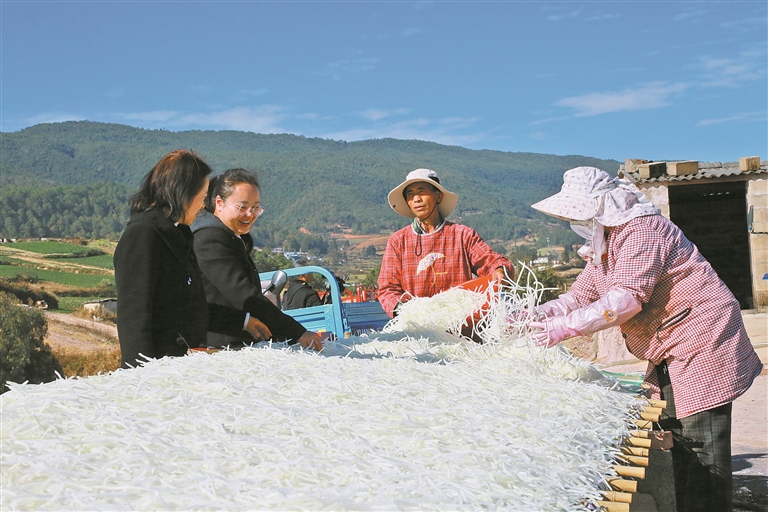 石屏县纪检监察机关立足职能定位,聚焦特色产业发展全链条开展精准监督,及时解决产业发展中的堵点难点,推动特色产业提质增效。图为纪检监察干部在哨冲镇向农户了解相关情况。