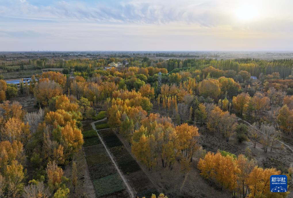 这是10月17日拍摄的内蒙古巴彦淖尔市临河区新华林场(无人机照片)。新华社记者 李云平 摄