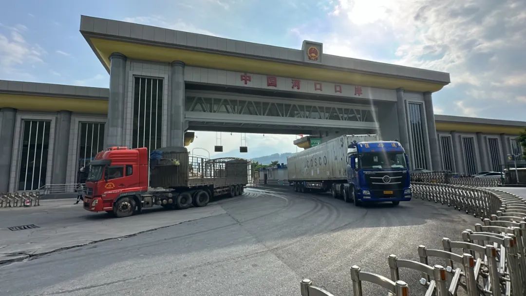 货车驶入河口口岸 图源:“国门河口”微信公众号
