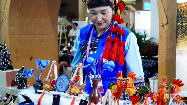 “你看,这只瓦猫不仅能招财,还能当挂件、摆件玩偶!”在丽江展区,传统守宅神兽瓦猫完成了从屋脊到展架的“穿越”。