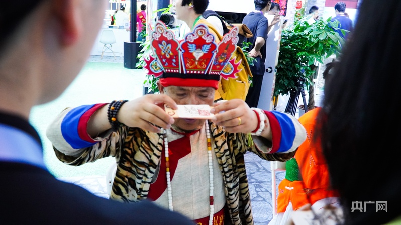 丽江展区内东巴文字送上祝福(央广网记者 魏文青 摄)
