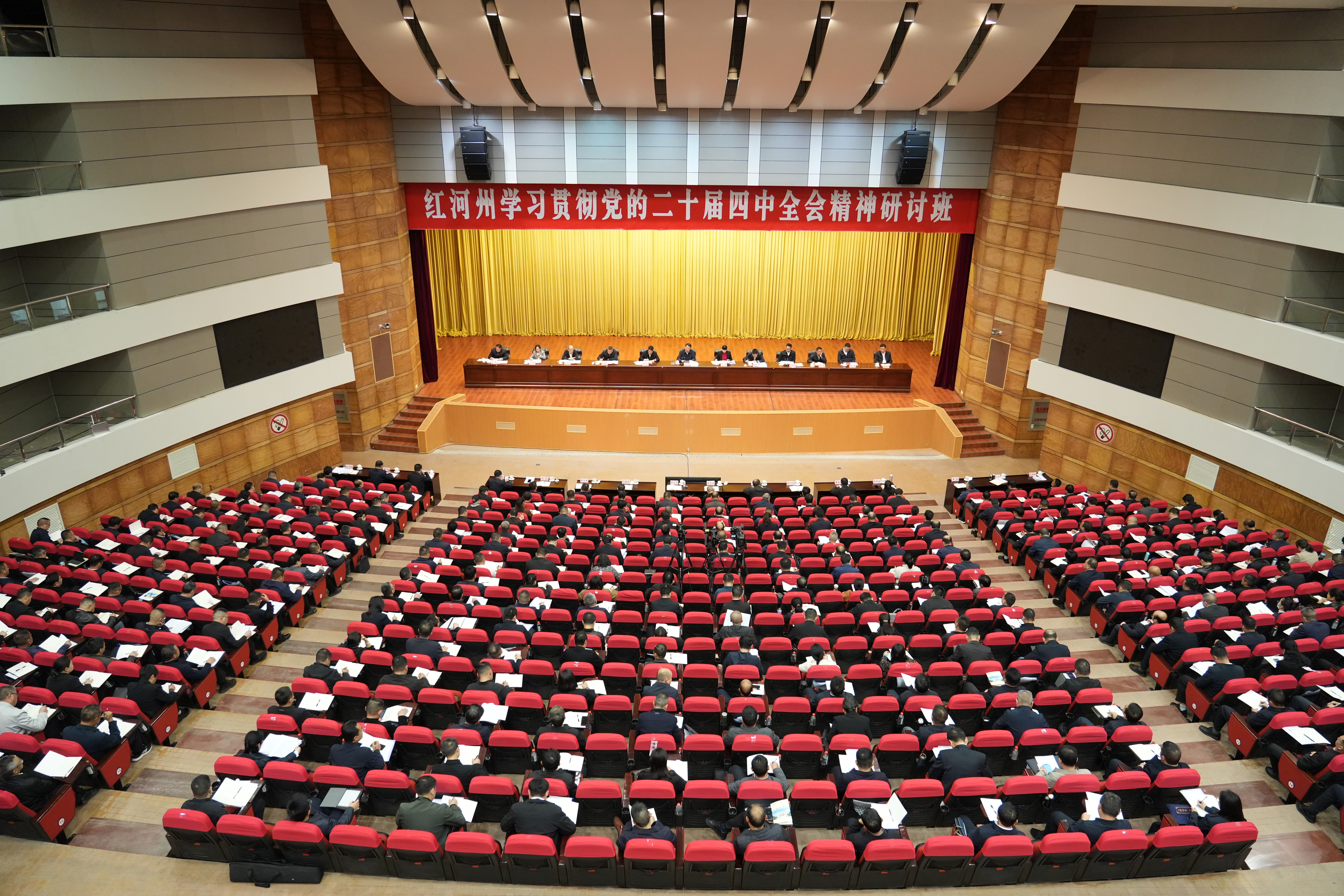 本轮研讨班共分3期举办,对全州县处级以上领导干部、乡镇(街道)党政正职共1800余人进行全覆盖培训。本次研讨班采取“集中学习+视频直播”相结合的方式,在红河会堂和州委党校设主课堂,各县(市)设分课堂同步举行。
