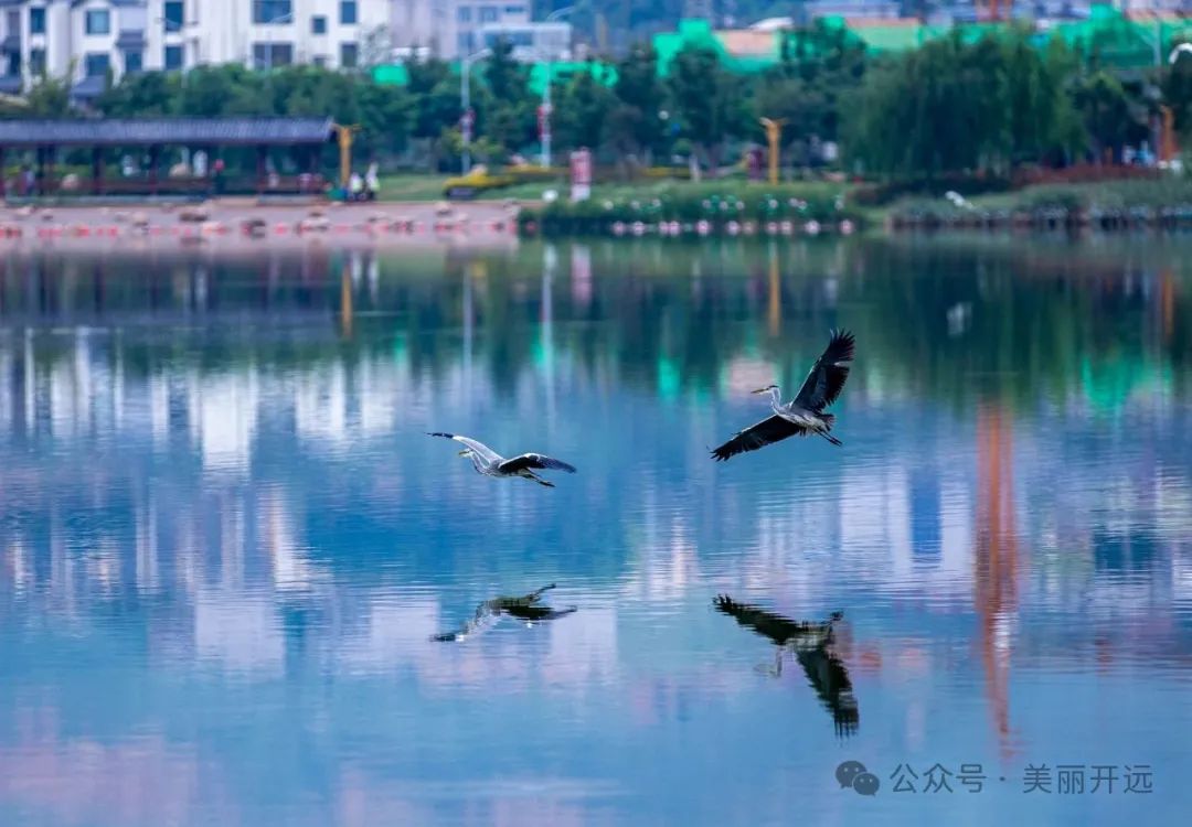 白鹭掠过水面。 图片由开远市融媒体中心提供