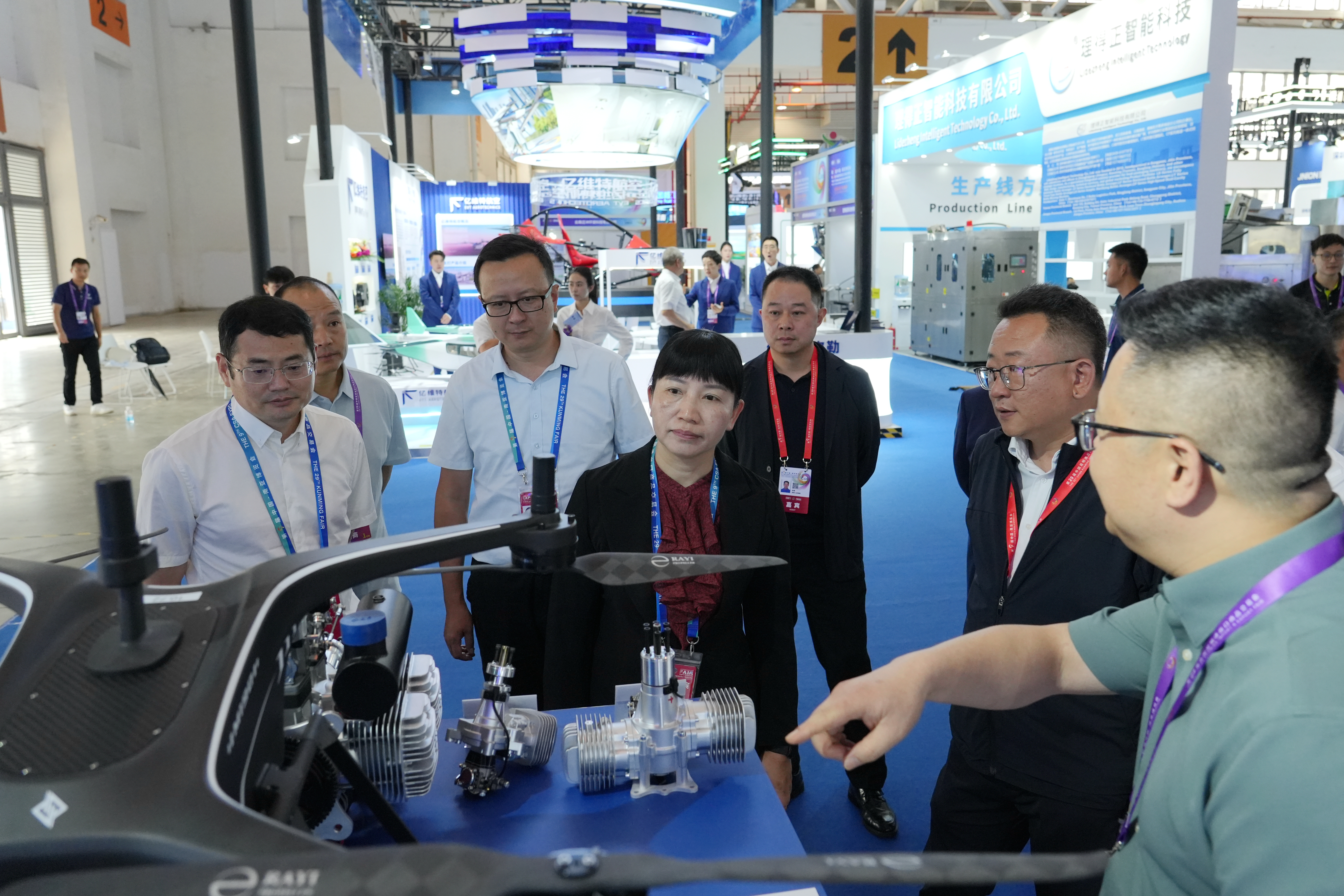 罗萍先后到制造业馆、医疗体育康养馆,详细了解展场布置、特色产品展示、商贸洽谈等情况,并与企业负责人深入交流。