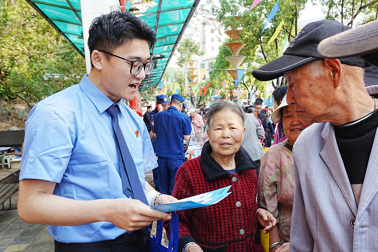 4月15日,在泸西县秀山广场,泸西县人民检察院检察人员向群众讲解国家安全知识。