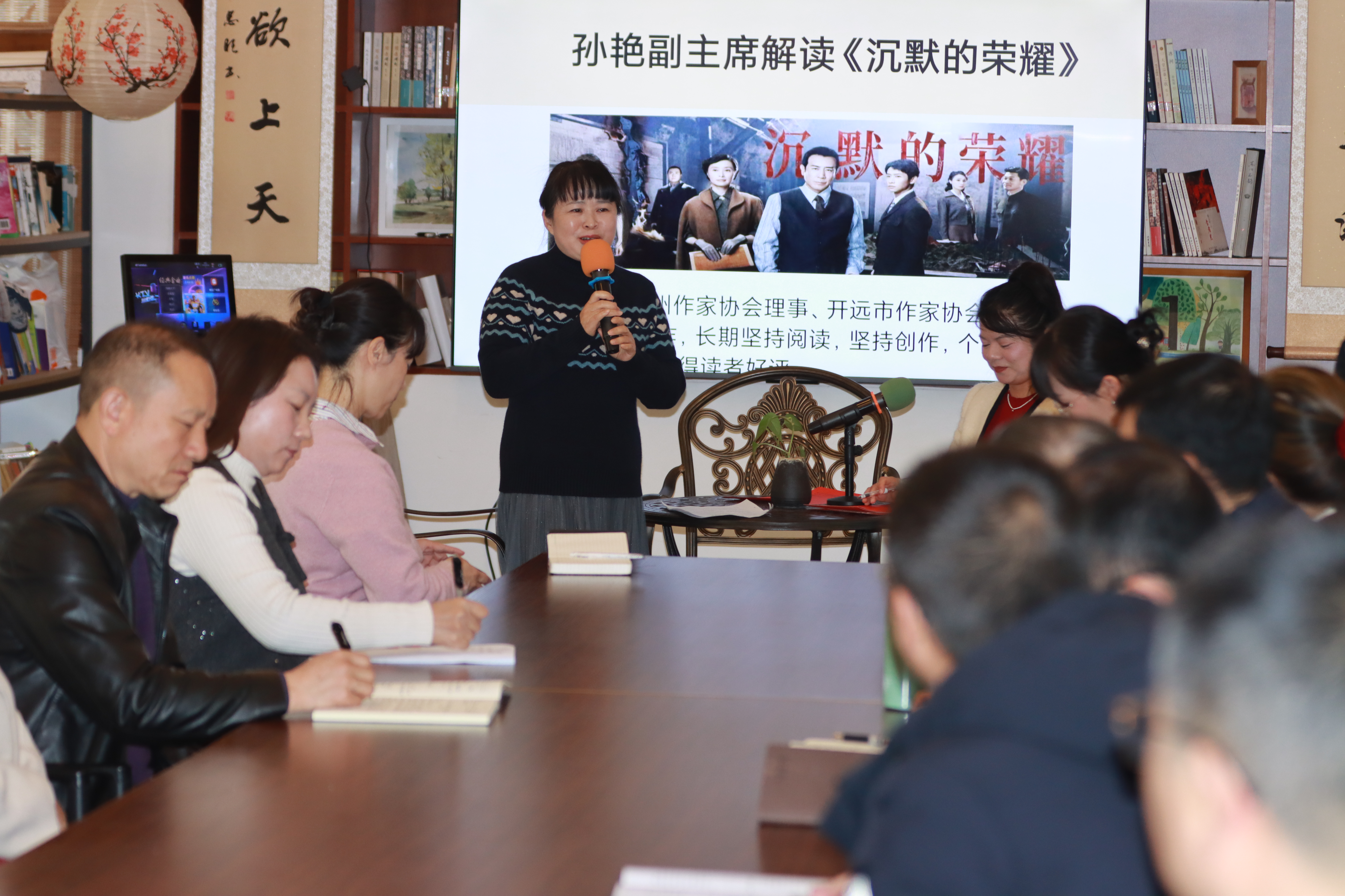 随后,多位嘉宾依次带来精彩分享。开远市文联副主席马文卫从语言、人物与情节入手,深入解读孙犁经典《荷花淀》;修益书社书友何国庆结合自身经历,阐述如何《挖掘本土素材,讲好红色故事》;修益书社副社长孙艳以《道之所在,虽千万人吾往矣——观〈沉默的荣耀〉有感》为题,传达“阅读无处不在,贵在用心体悟”的见解。
