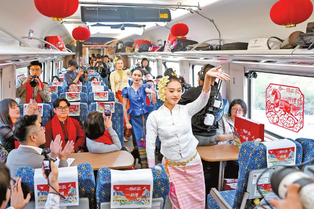 云南网讯(记者 张敏 常远 实习生 彭希然) 2026年是中老建交65周年。2月4日适逢立春,阳和启蛰,“一路欢歌一路情”中老铁路春节文化主题活动在飞驰的中老铁路列车上温情上演,并通过直播向全球观众呈现了一场行进中的文化交流盛会,生动传递了中老两国之间的深厚情谊与时代新风。