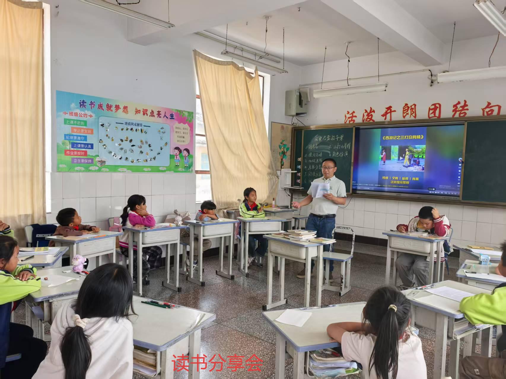 教育的力量如春日溪流,在散坡村的土地上悄然润泽。每周四、周五下午,李老师还会组织学生开展“乡村少年阅读启蒙指导”课堂。这间飘着墨香的教室,都会准时响起孩子们的讨论声,而这样温暖的场景,自2024年李吉华老师驻村以来,早已成为山村最动人的日常。李老师常说:“每个孩子都是等待点燃的火种,教育就是那簇永不熄灭的光。”在飘着清墨书香的课堂书桌间,孩子们围坐成圈,捧着翻卷边的故事书,眼里闪烁兴奋光芒——有人分享《草房子》里质朴的乡村情谊,有人模仿孙悟空讲述冒险故事,分角色扮演三打白骨精的精彩诵读,笑声与讨论声此起彼伏。阳光透过老旧的玻璃窗,洒在孩子们专注的脸庞上,为教室镀上温暖光晕。如今,孩子们课间谈论的不再是游戏玩具,而是《少年中国说》里的铿锵字句;家长微信群中,农谚偏方逐渐被教育心得取代。这种精神面貌的蜕变,正是教育帮扶结出的珍贵硕果,让书香真正成为照亮乡村少年成长之路的永恒光芒。