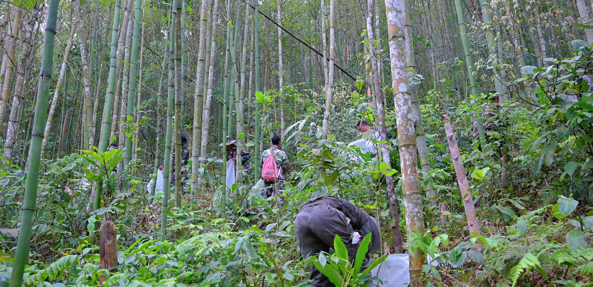 云南金平马鞍底乡组织护林员对蝴蝶幼虫进行保护性迁移。阮纯 摄