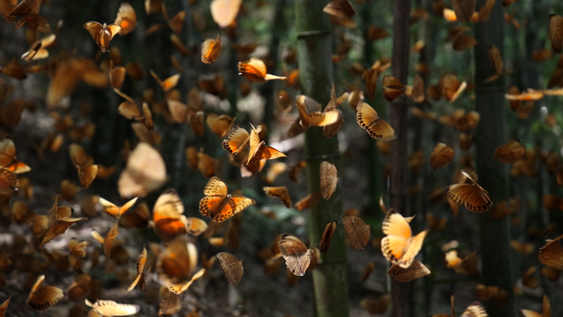云南省红河州金平县中国·红河蝴蝶谷博物馆馆长、蝴蝶观察员杨镇文介绍:“经过我们对林区进行监测,预计今年蝴蝶爆发的情况是非常好的,尤其是营盘山这个点,虫口密度非常大,是近10年以来数量最多的一次,预计单点爆发量就可以达到上亿只。”