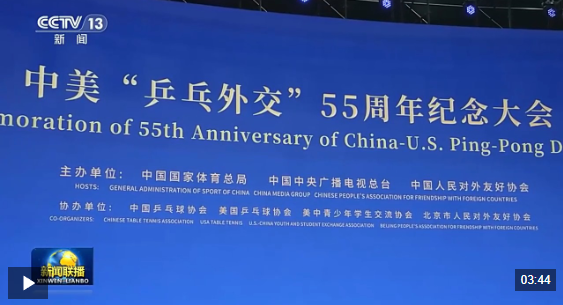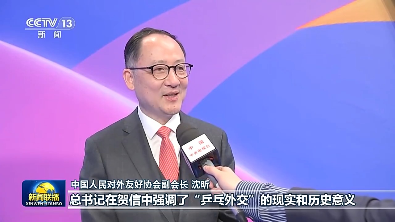 中国人民对外友好协会副会长 沈昕:总书记在贺信中强调了“乒乓外交”的现实和历史意义,特别鼓励两国的青年一代他们要相知相亲、携手同行,这对中美两国的民间交往是一个巨大的推动,也注入了温暖的能量。