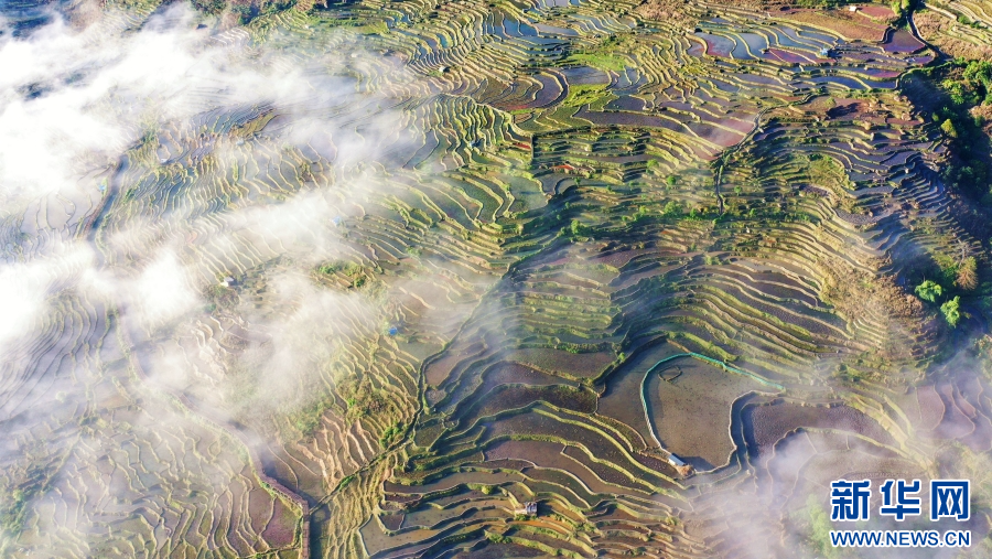 红河县撒玛坝梯田(4月14日摄)。新华网发(红河县融媒体中心供图)