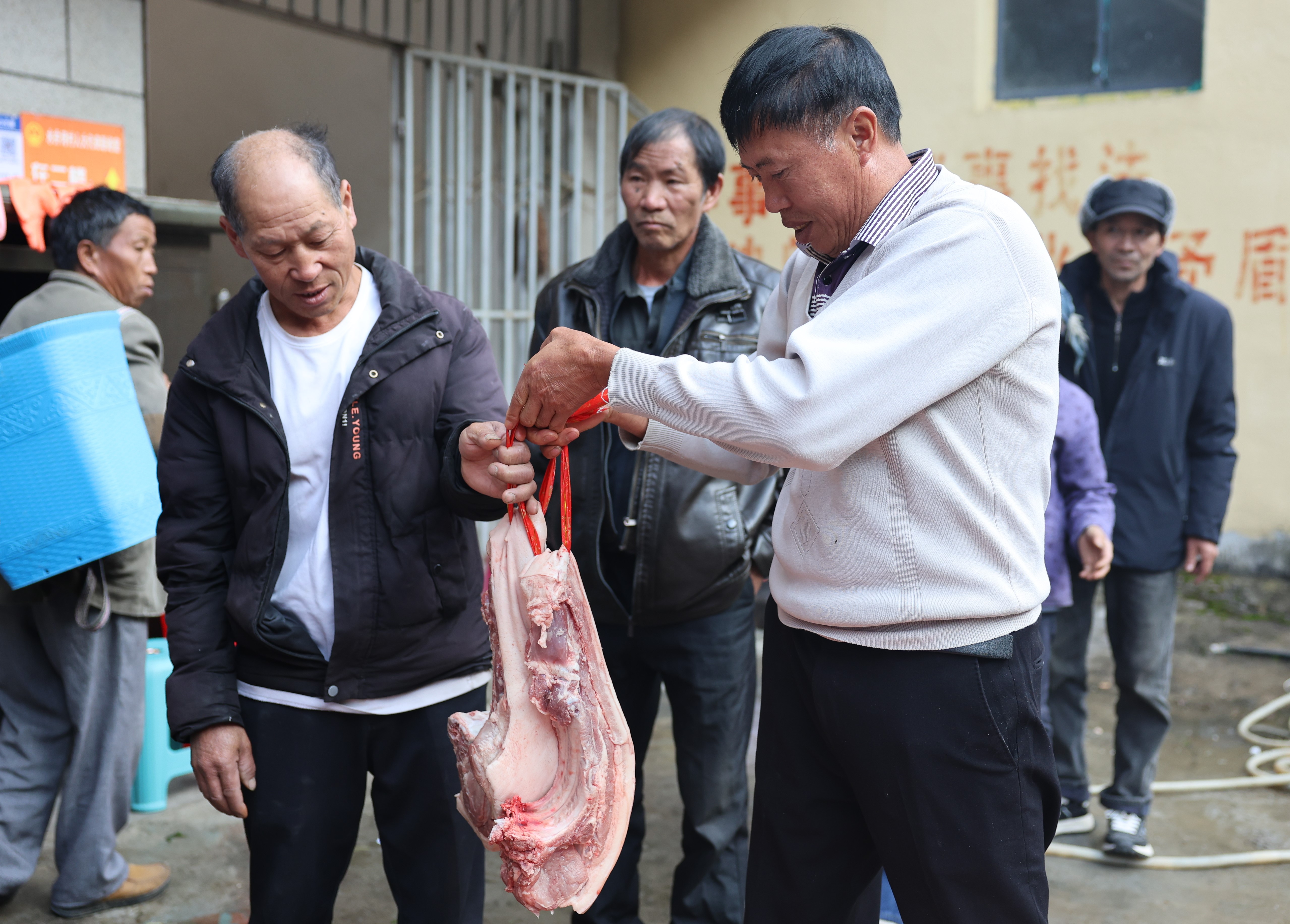 分红现场,农户们依次有序领取“收获礼包”,每人分得600元现金及30斤新鲜猪肉。“感谢党和政府,在家门口就能增收,太开心了!”水井湾村民郑光选满脸笑意地说。
