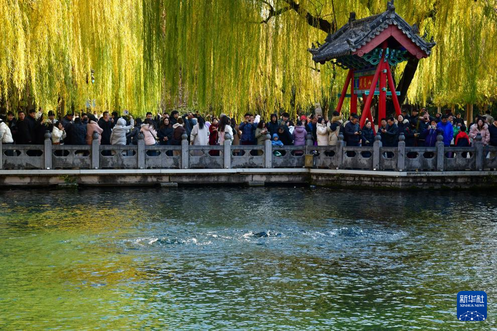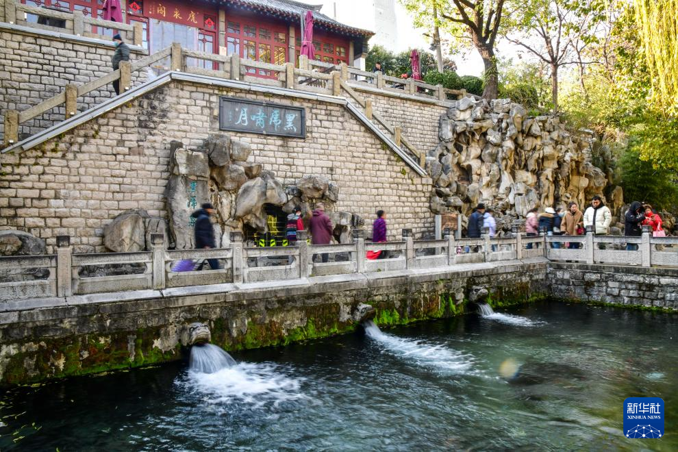 游人在济南黑虎泉游玩(2024年12月7日摄)。新华社记者 朱峥 摄