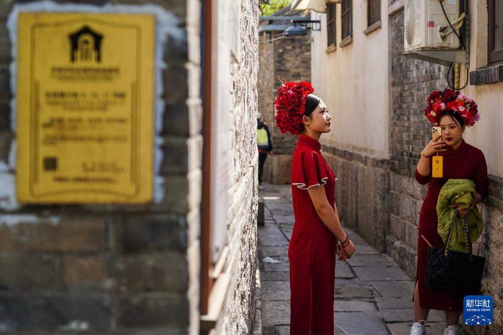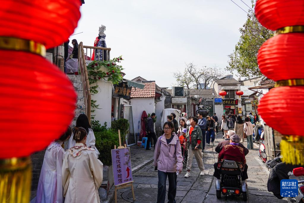 游人在济南曲水亭街游玩(2024年4月5日摄)。新华社记者 朱峥 摄