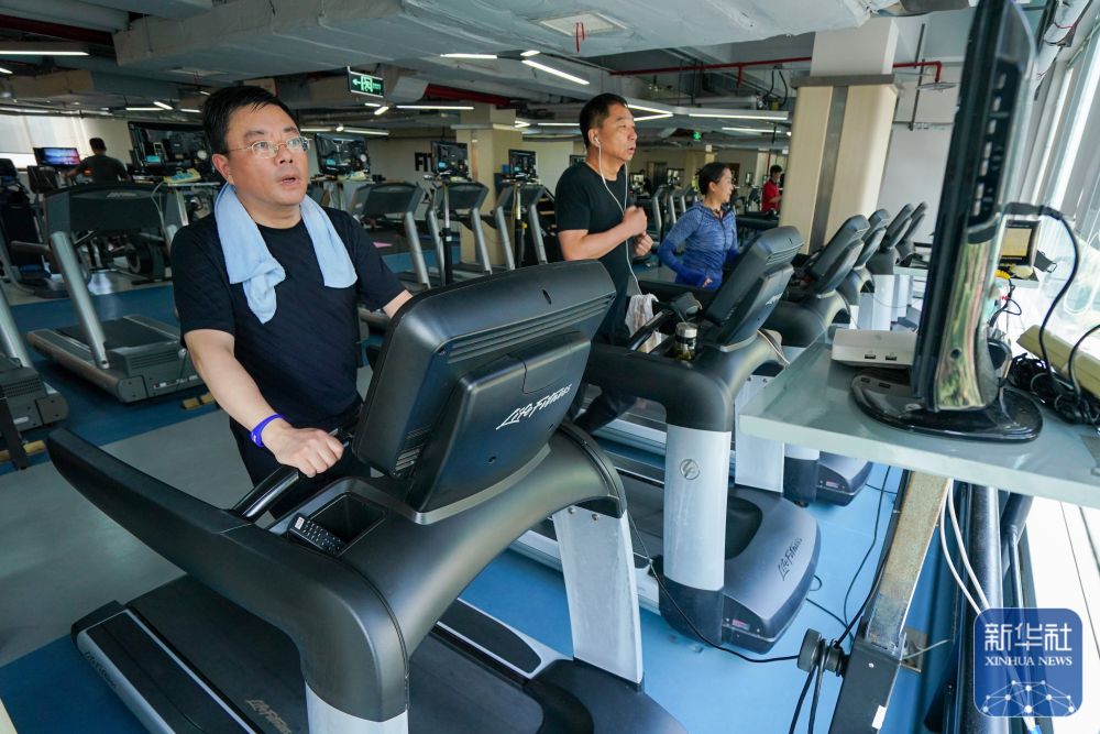 ↑2021年2月16日,市民在南京五台山体育中心健身馆内跑步。新华社记者 李博 摄