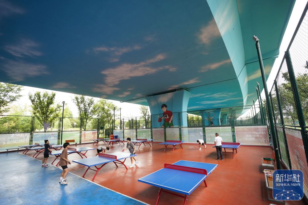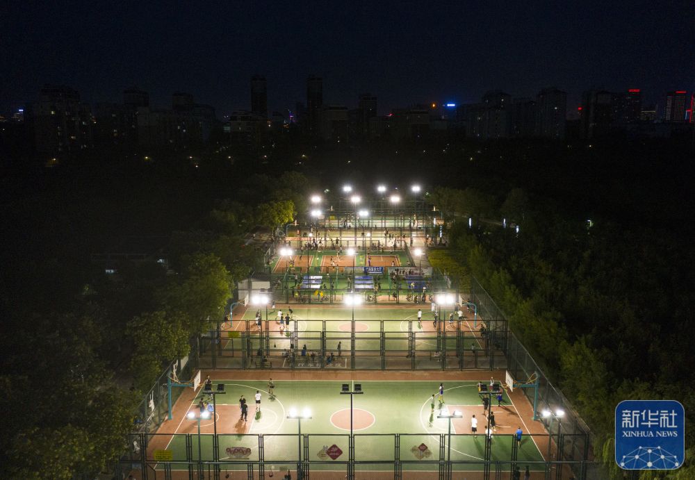 ↑2022年8月28日,江苏省市民在泰州市东环高架体育公园健身。新华社记者 季春鹏 摄