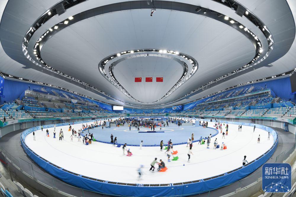 ↑2023年7月1日,人们在国家速滑馆“冰丝带”里滑冰。国家速滑馆是2022年北京冬奥会速度滑冰项目的比赛场馆。新华社记者 鞠焕宗 摄