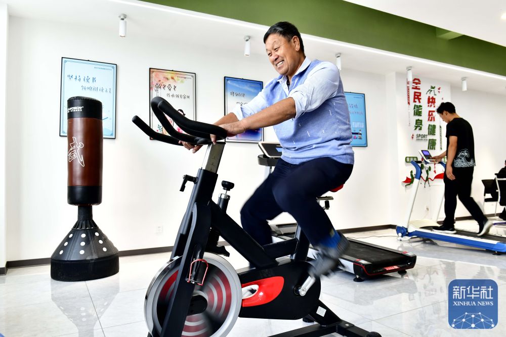 ↑2023年10月12日,在山东省惠民县姜楼镇一处“百姓健身屋”,群众在锻炼身体。新华社记者 郭绪雷 摄