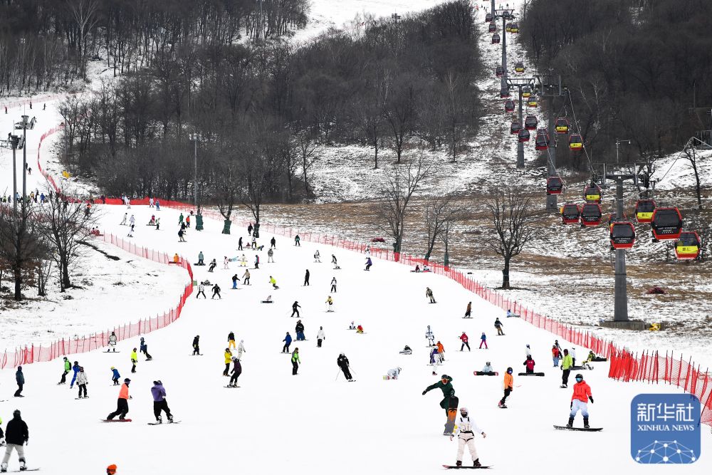 ↑2022年11月19日,滑雪爱好者在吉林省万科松花湖度假区滑雪场滑雪。新华社记者 许畅 摄