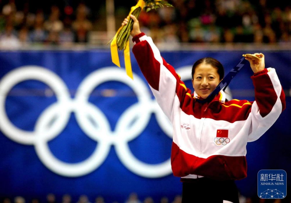↑2002年盐湖城冬奥会上,杨扬夺得女子短道速滑500米金牌,让中国体育代表团终于在冬奥会上实现金牌“零”的突破。新华社记者 王岩 摄