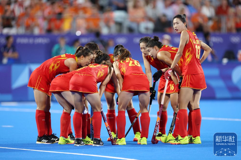 ↑2024年8月9日,中国队球员在巴黎奥运会女子曲棍球金牌赛中讨论短角球战术。中国女曲一路力克强敌,决赛中与世界第一荷兰队战至23米球决胜。新华社记者任鹏飞 摄