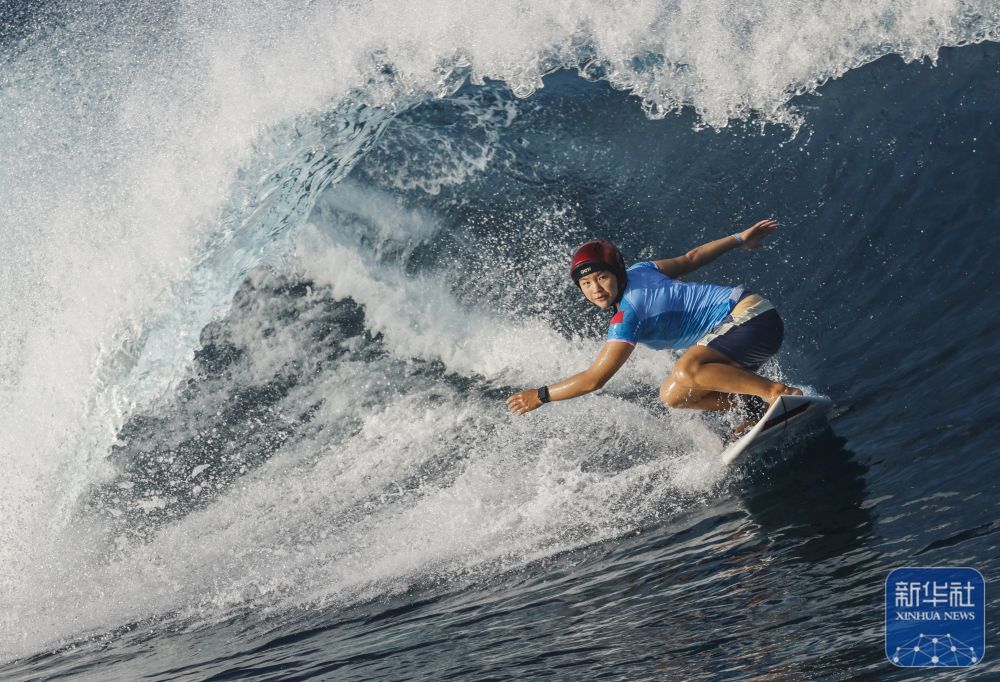 ↑2024年8月1日,首次为中国队拿到冲浪项目奥运门票的杨思琪在巴黎奥运会女子冲浪项目第三轮比赛中。最终,她止步16强。新华社记者 马平 摄