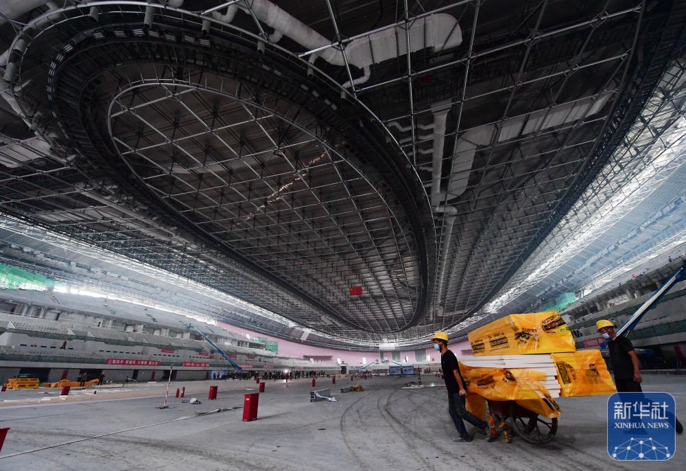 ↑记者探访处于建设改造冲刺阶段的冬奥会北京赛区的国家速滑馆,(2020年7月28日摄)。新华社记者 张晨霖 摄