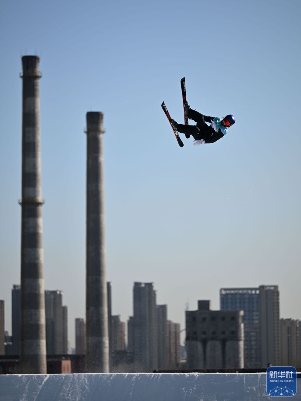 ↑2022年2月8日,谷爱凌在北京首钢滑雪大跳台举行的北京2022年冬奥会自由式滑雪女子大跳台决赛中。 新华社记者 李尕 摄