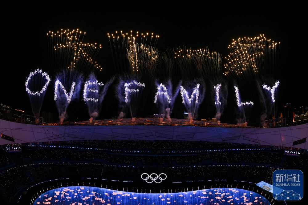 ↑2022年2月20日,第二十四届冬季奥林匹克运动会闭幕式在北京国家体育场举行,这是闭幕式上的焰火表演。新华社记者 宋彦桦 摄