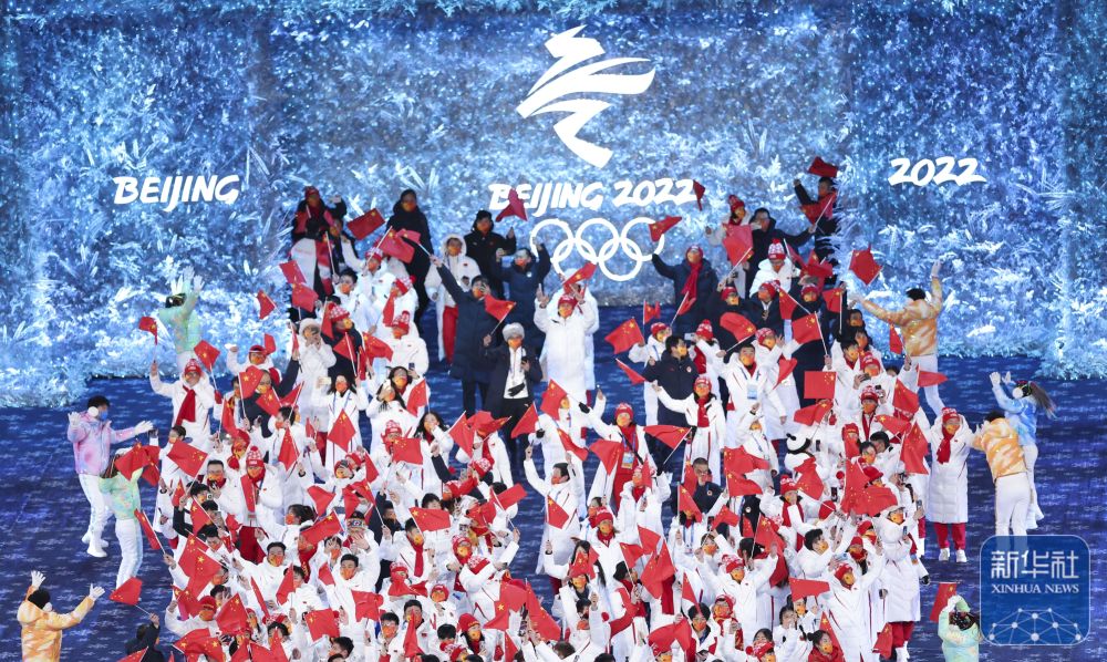 ↑2022年2月20日晚,北京第二十四届冬季奥林匹克运动会闭幕式在国家体育场举行。这是中国代表团成员入场。 新华社记者 兰红光摄