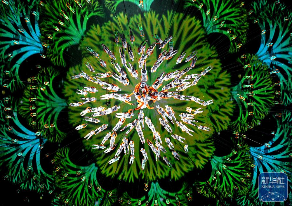 ↑2022年2月4日晚,第二十四届冬季奥林匹克运动会开幕式在北京国家体育场举行。这是开幕式上的“构建一朵雪花”环节。 新华社记者 曹灿 摄