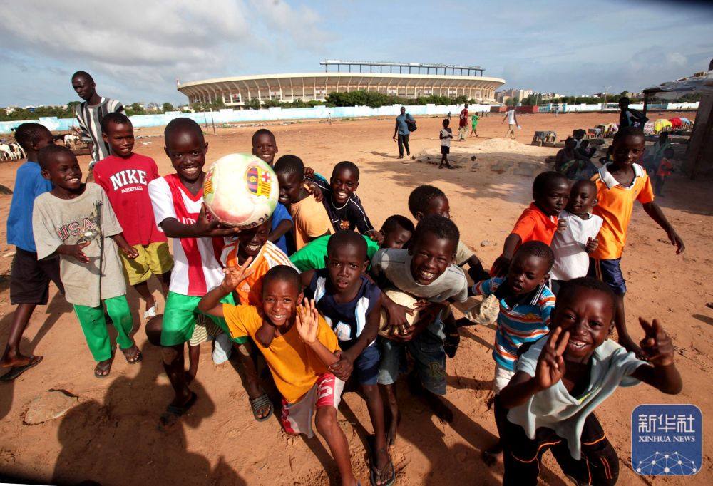 ↑2011年8月21日,在塞内加尔首都达喀尔郊区,一些孩子在中国援建的体育场前踢球。新华社记者 刘宇摄
