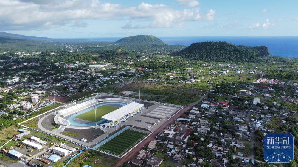 ↑这是2021年4月8日在科摩罗的大科摩罗岛拍摄的中国援建的万人体育场(无人机照片)。新华社发(马浩宇摄)