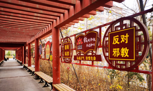 为有效动员和激励社会各界持续关注、支持、参与反邪教,切实筑牢群众防范邪教、抵御邪教的思想防线,近年来,甘肃省瓜州县持续建设室外反邪教宣传阵地。2024年12月,瓜州县渊泉镇明珠御园居民小区的反邪教宣传长廊投入使用,成为反邪宣传阵地的又一名“新成员”。