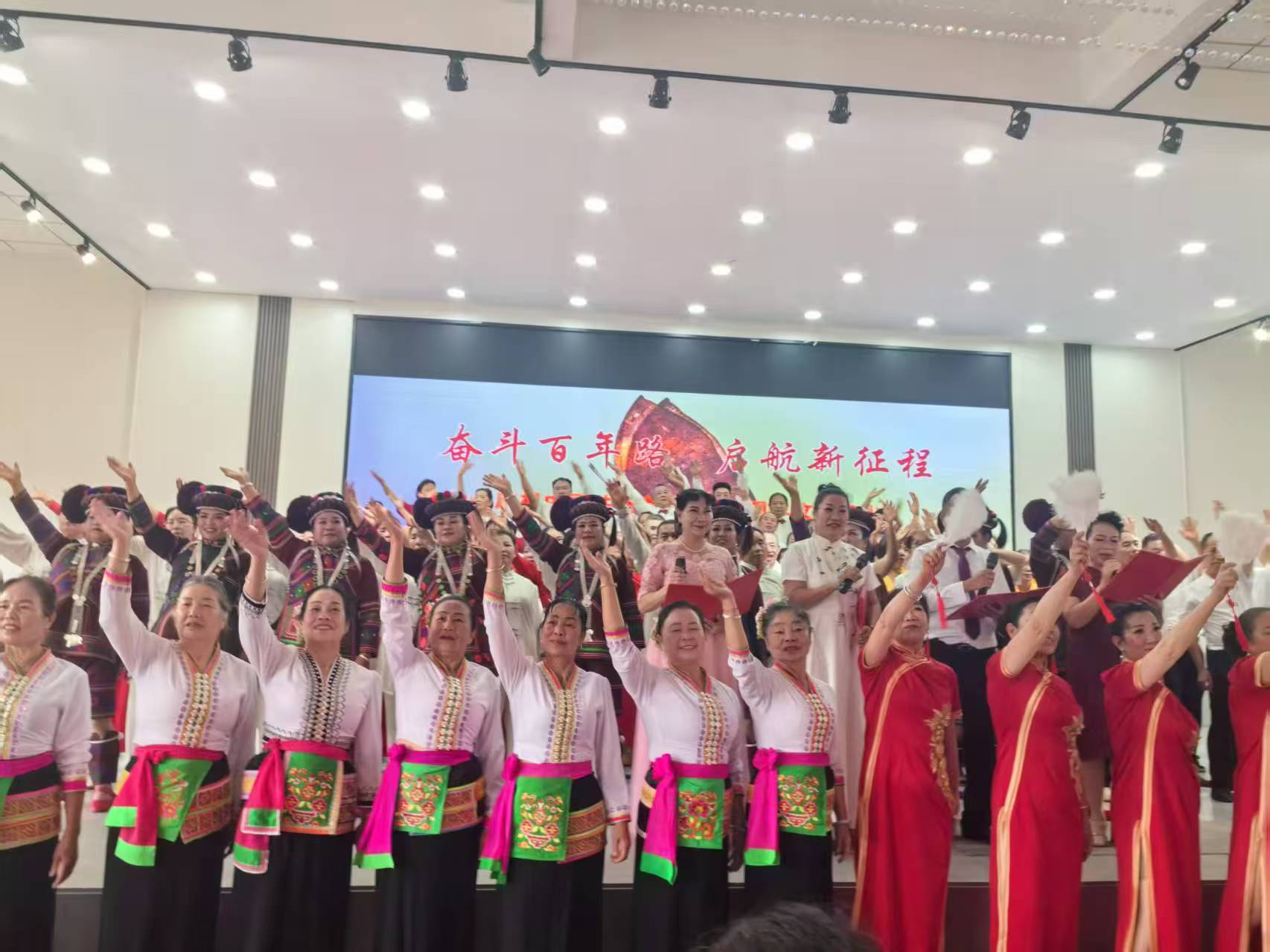 演出在欢快热烈的合唱中拉开帷幕,舞蹈节目环节,只见老同志们身着民族特色服饰,用灵动的舞步展现了少数民族独特的风情与活力,瞬间点燃现场气氛。舞蹈以其优美婀娜的舞姿,将观众带入如诗如画的意境之中,让人沉醉。