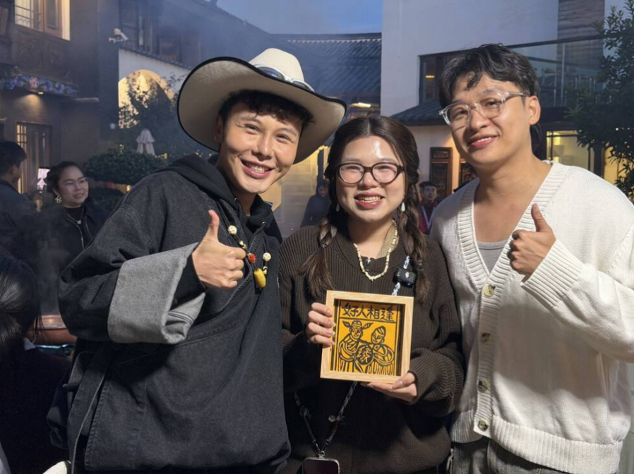 中国博主“丽江小智”给姜思倪一家送云南非遗甲马