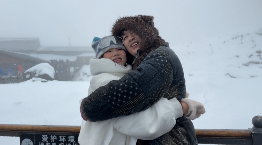 柬埔寨拥有千万粉丝的网红姜思倪和亨维萨在玉龙雪山开心拥抱