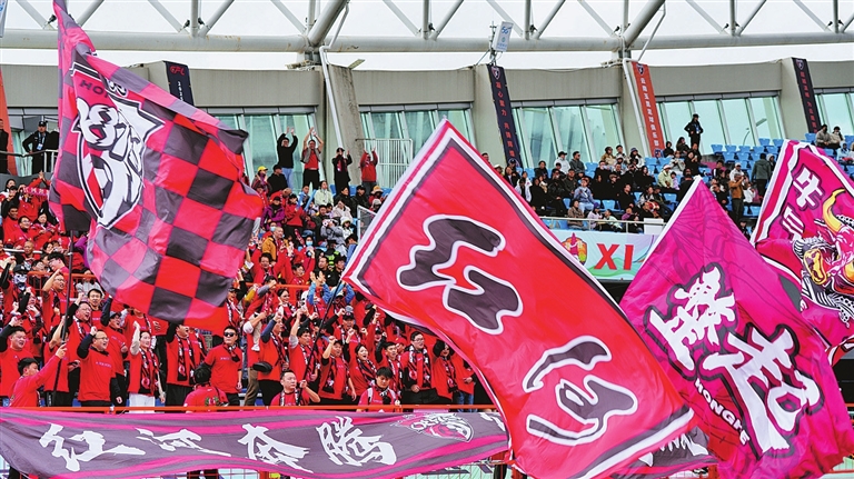呐喊鼓劲的红河球迷。