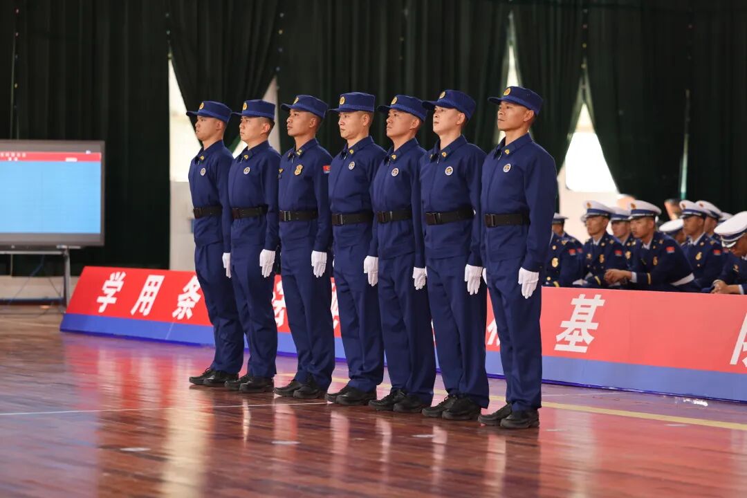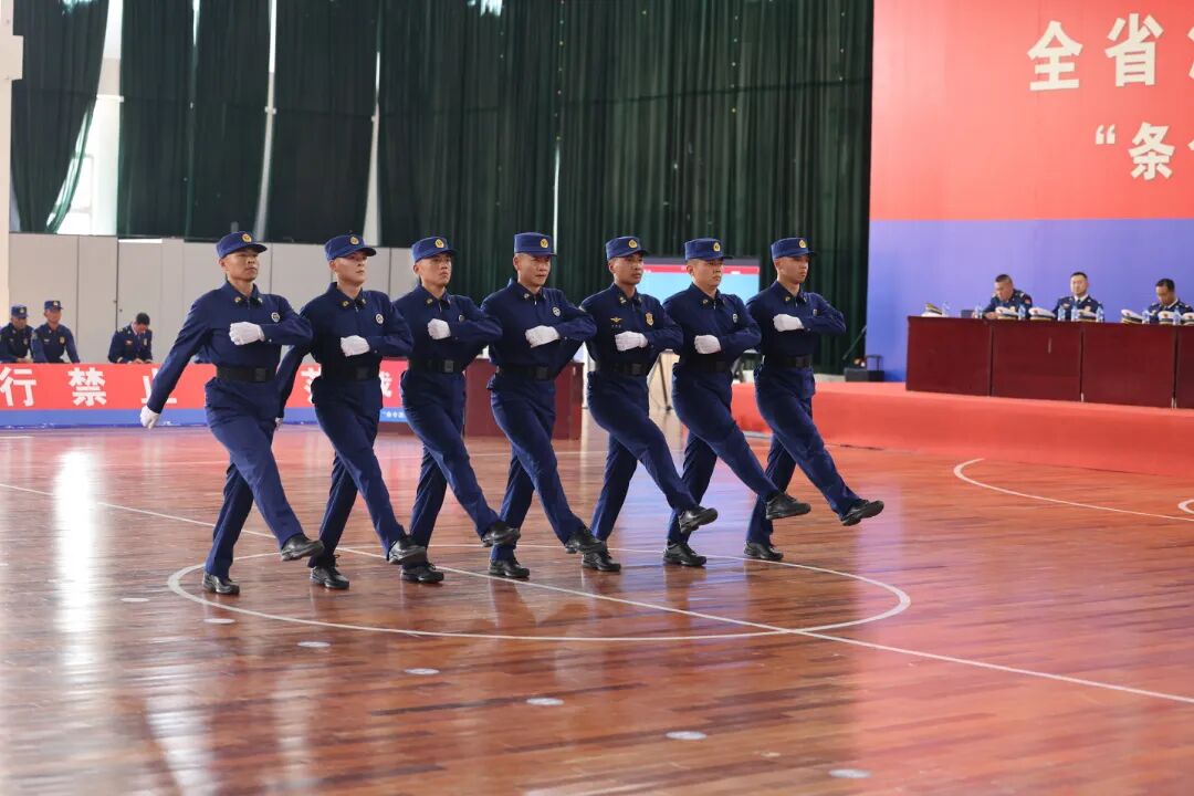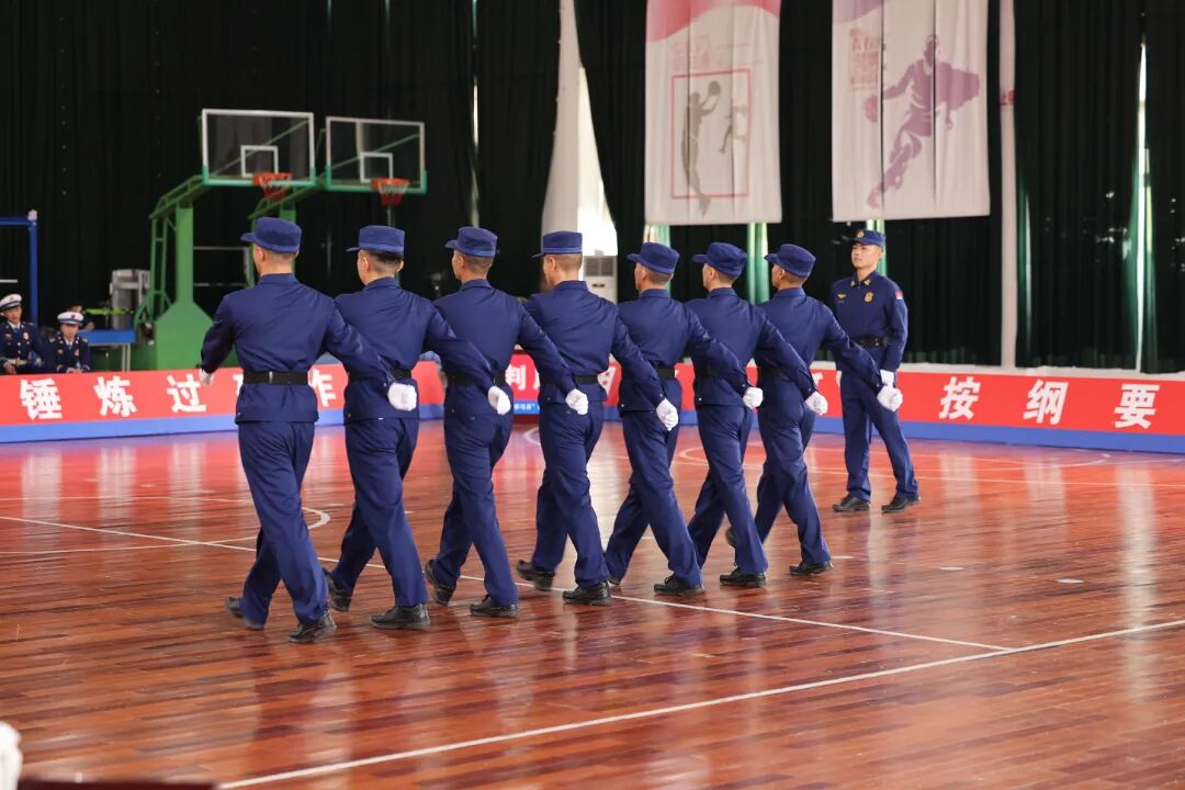 阳光下,汗水闪耀着晶莹的光芒;赛场上,眼神透露着如炬的坚定。整齐的队列不仅仅是训练成果的展示,更是这支队伍纪律严明、作风优良的生动写照。为了这一刻在全省舞台上的整齐划一,全体参赛队员以铁一般的纪律自我约束,以极致标准打磨每一个细节。为了一个转体的角度精准、一个步幅的距离统一、一声口号的气势齐整,大家在训练场上无数次定点定位、反复摆臂踢腿、校正身形姿态,常常一个简单动作重复成百上千次,直到肌肉形成记忆、步调浑然一体。从晨光熹微到暮色降临,从烈日当空到晚风微凉,训练场成了淬炼意志的熔炉。备战期间,队员们仅在周末留出半天休整时间,其余精力全部投入严苛训练,没有一人叫苦、没有一人退缩。备战全程,支队领导高度重视全程靠前指挥、多次深入训练场检查指导,为队员们提振士气、坚定信心。