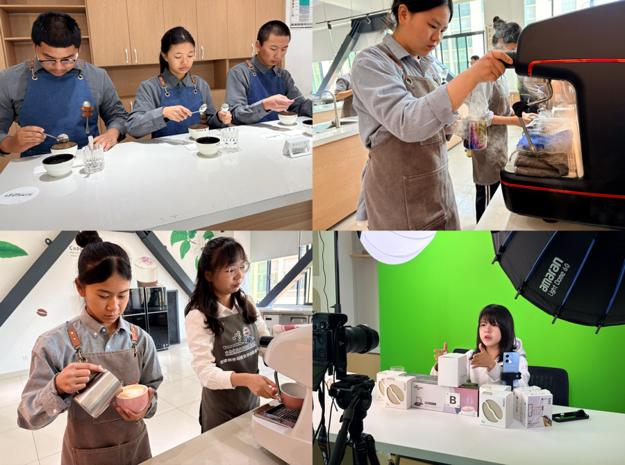 走访调研期间,媒体记者和网络达人还前往隶属于保山中等专业学校(保山技师学院)的保山咖啡产业学院,实地探访学院教学实训中心、生产实训基地,了解校企合作人才培养模式、实训基地建设、课程设置等情况,近距离观摩学生烘焙咖啡、冲煮咖啡、直播售卖咖啡等实操训练,记录云南咖啡产业人才培育实践,推动保山咖啡文化与产业形象传播。
