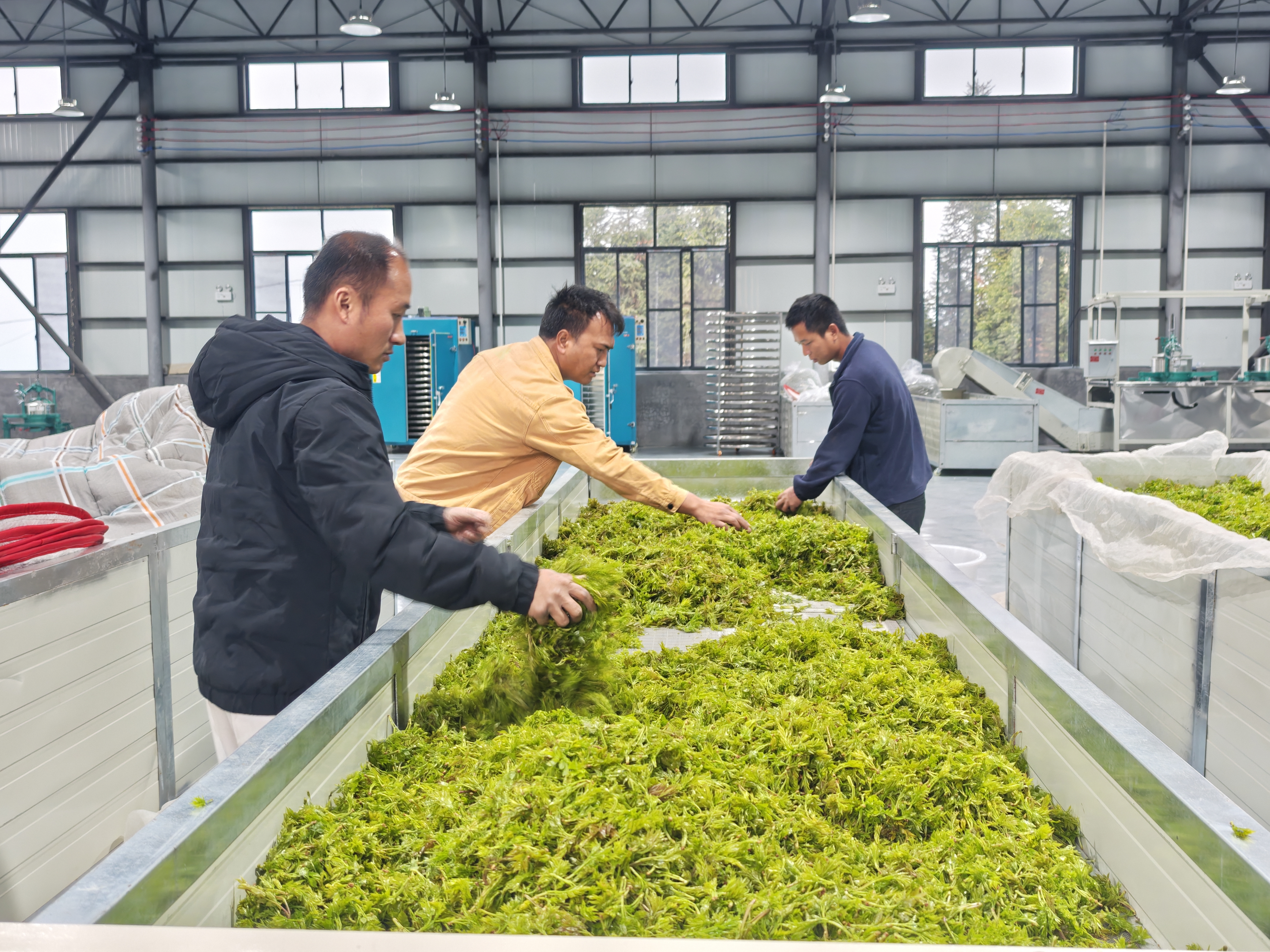 收购现场同时也是技术指导现场。张国亮细致地讲解藤茶田间管理、科学采摘技巧,手把手教茶农提升种植、采摘水平,既点燃了农户种植热情,也为保证藤茶的品质筑牢了根基。收购后的鲜叶,经晾晒、杀青、揉捻、发酵、烘干等多道工序,仅需两天便可完成加工装袋,确保以最新鲜的状态走向市场,为产业持续增收筑牢市场支撑。