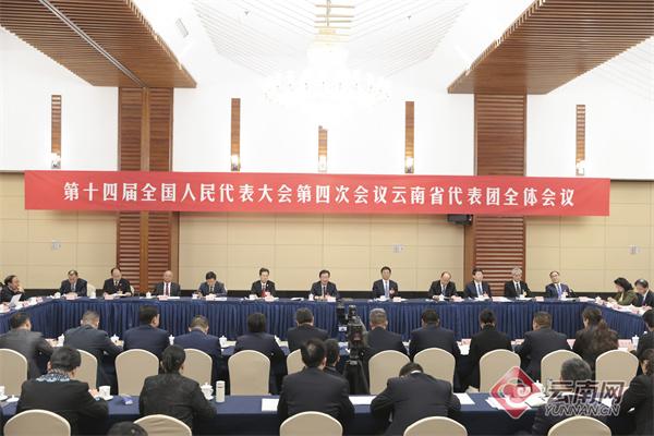 3月11日上午,出席十四届全国人大四次会议的云南省代表团举行全体会议。记者 陈飞 胡妤雅 摄